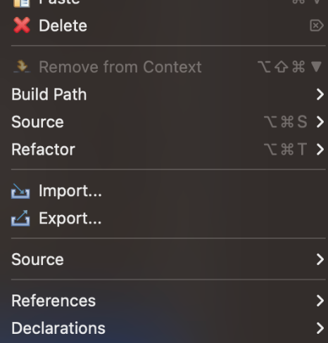패키지나 프로젝트를 오른쪽 클릭합니다.